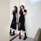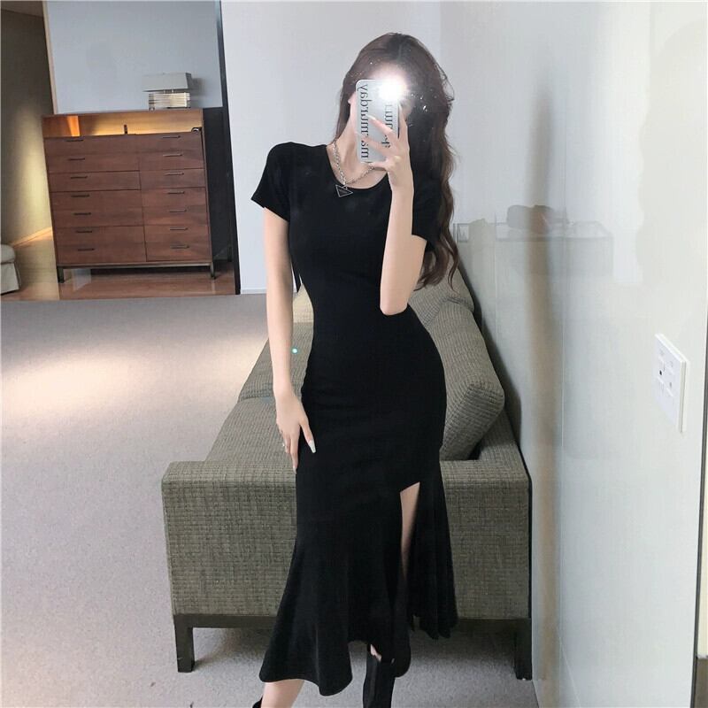 気質セレブのハイエンドスカートの女性のニッチデザインセンス不規則なスリムフィットバッグヒップハイコールドロイヤルシスタースタイルドレス女性 yingd20206021500