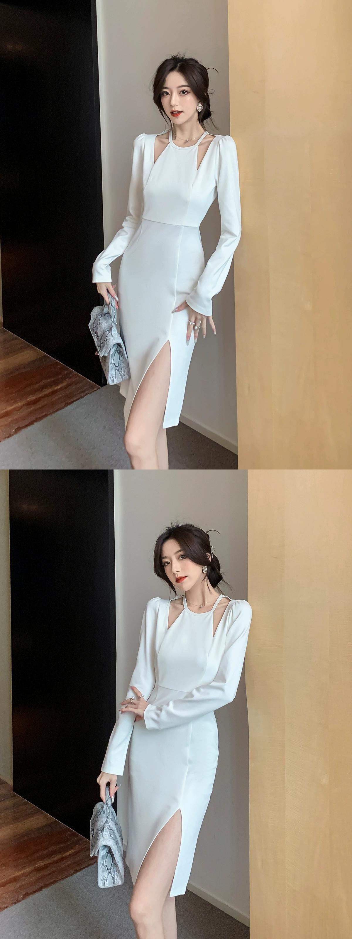 シックでユニークなスカートデザイン中空スリムスリムスリットセクシーなハイコールドロイヤルシスタースタイルドレス秋冬 オータム 秋物 ウィンター 冬物 yingd93352059347