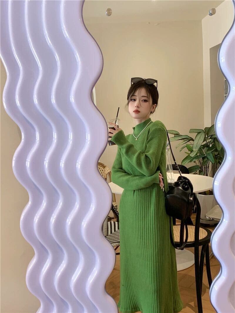 -高品質の超見栄えの良いセータースカート秋冬コートバージョンスリムで薄いハーフハイカラーニットドレス オータム 秋物 ウィンター 冬物 yingd15394731669