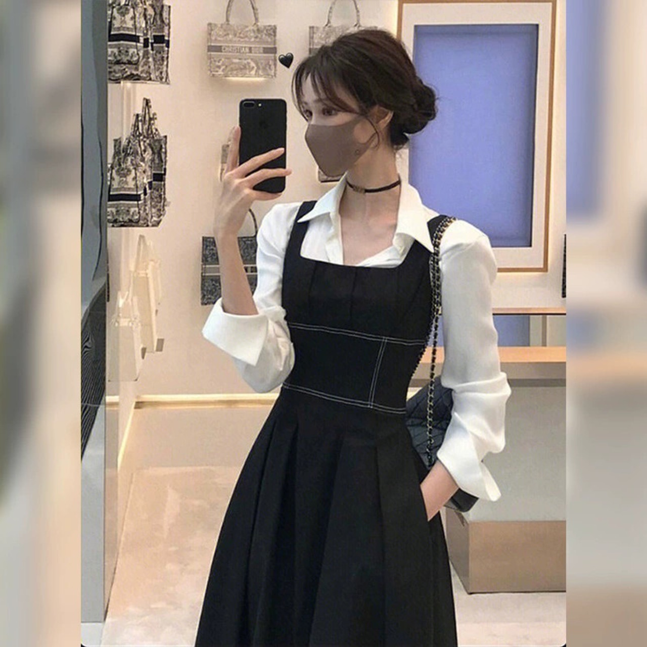春先レディース 2023 新作 年齢軽減スーツ スカート ブラック デニム ストラップ ワンピース 2 点セット付きコンプリートセット スプリング 春物 yingd16674859434