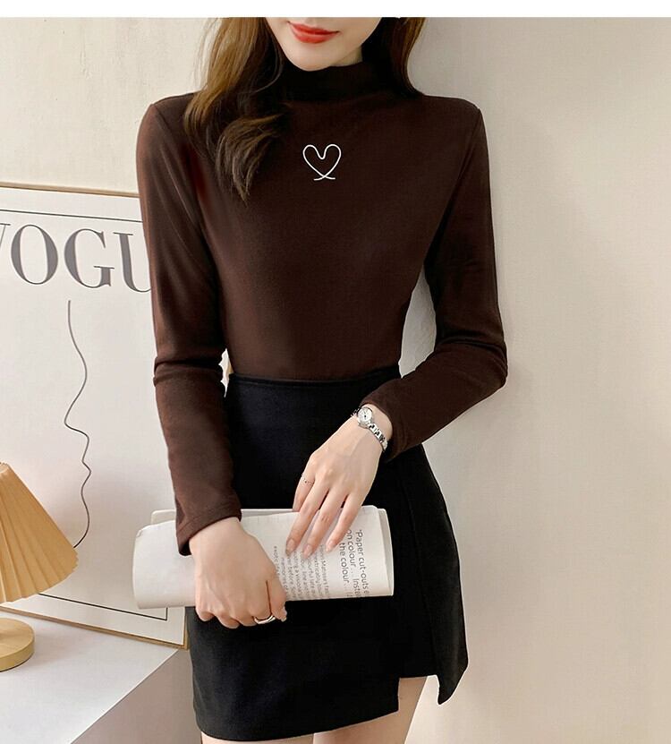 ハーフハイカラードイツベルベットボトムシャツ女性の秋と冬のファッショナブルなファッションアインスタイルインナー暖かい厚みのある長袖 tシャツトップ女性 ロング オータム 秋物 ウィンター 冬物 yingd56192196637