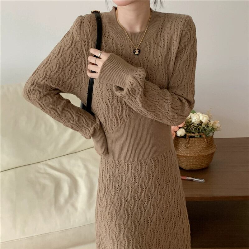 厚手のセータースカート秋冬コートバージョン怠惰なスタイルのハイエンドシックでシックなウエストインナーニットドレス女性 オータム 秋物 ウィンター 冬物 yingd36712170191