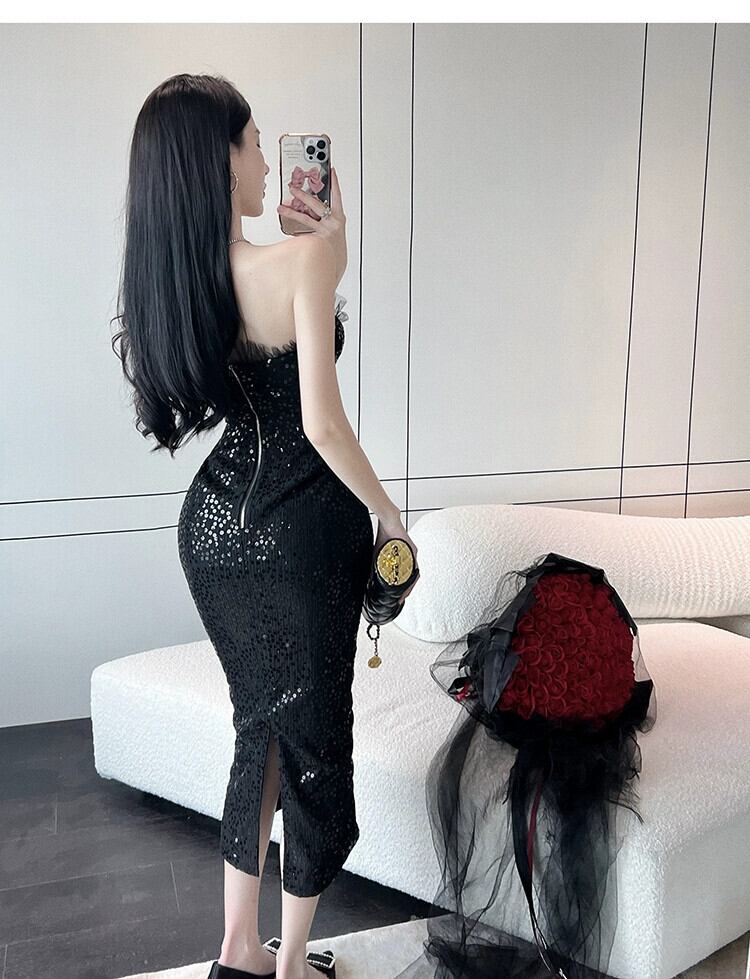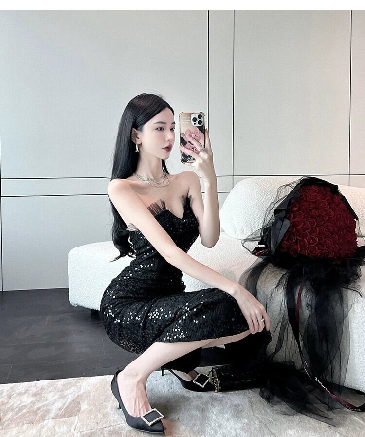 -エンド婦人服、軽い贅沢、気質、社交家、高級感、自己修養、痩身、セクシー、お尻、スパンコール、チューブトップドレス、女性の夏 サマー 夏物 yingd50198924911