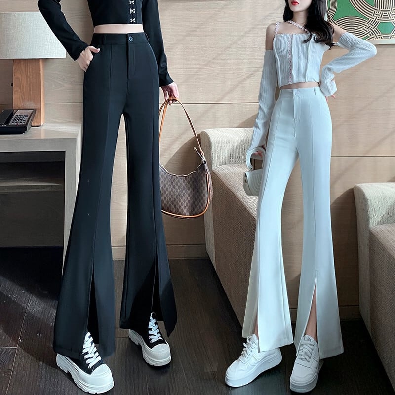 2023春夏新バージョンのハイウエスト痩身ドレープわずかフレアパンツセクシースリットカジュアルスーツロングパンツ ハイウェスト レッド スプリング 春物 サマー 夏物 yingd62829410838