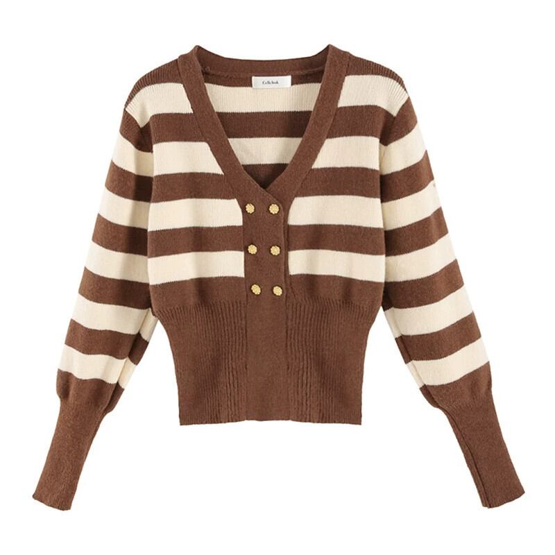 レトロな香港スタイルのストライプカーディガンニットジャケット女性のデザインセンスニッチショートセーター年齢を軽減する西洋スタイルのトップ女性 yingd98414212709