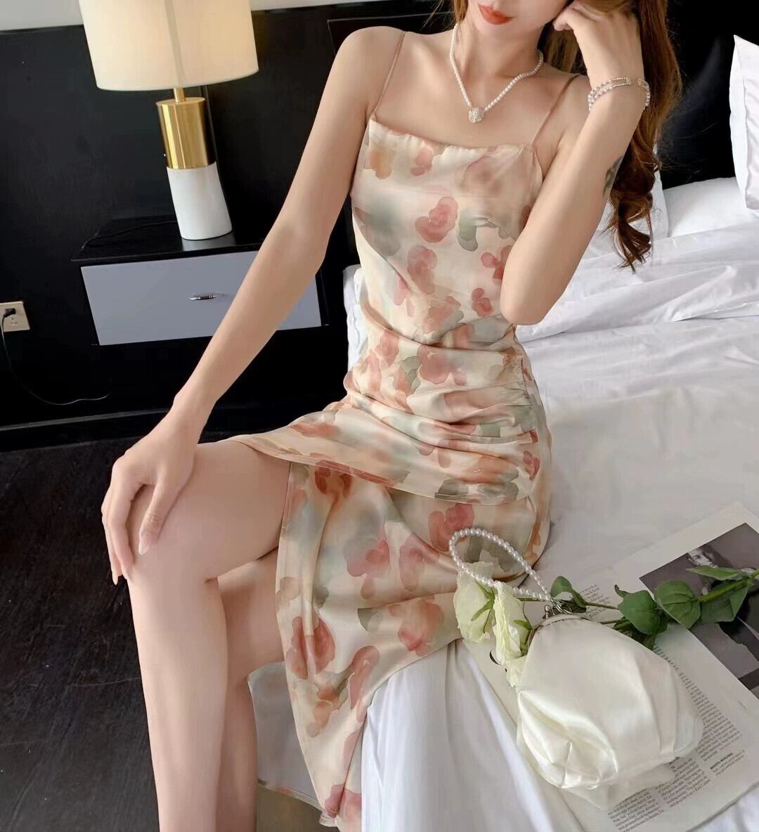 - エンドサテンサスペンダースカートレディースニッチデザイン自己修養の感覚とスリムな気質プリントサスペンダードレスレディース夏 サマー 夏物 yingd95059577044