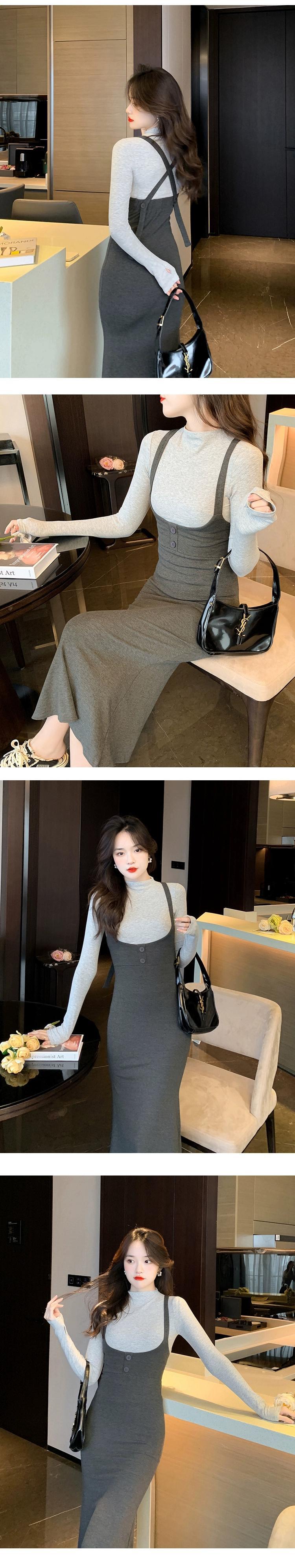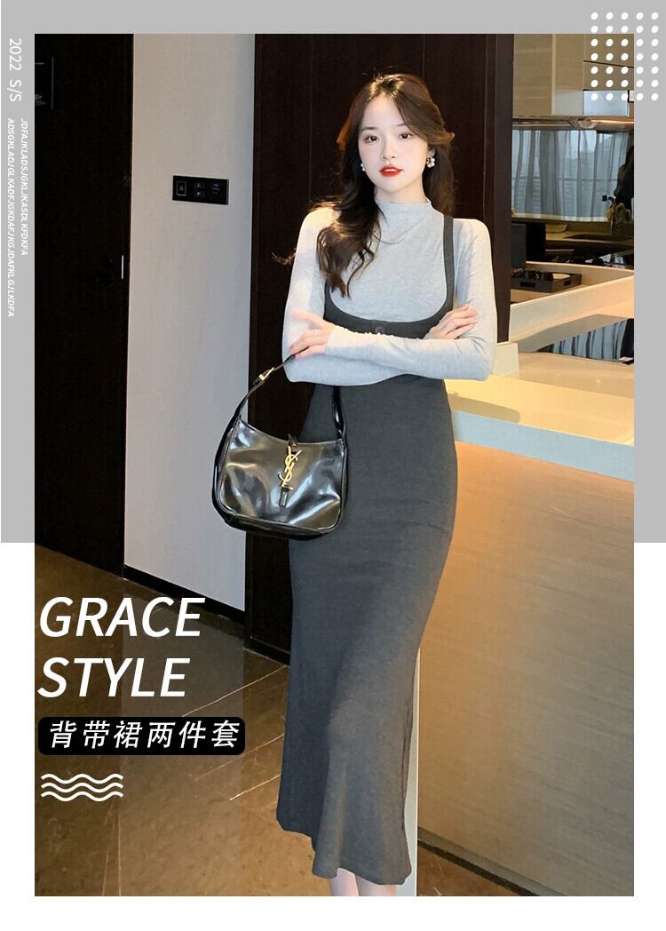 優しいスタイル着用秋の気質女神ファンサスペンダードレス女性デザインセンスニッチユニークなスカート2点セット オータム 秋物 yingd75778326942