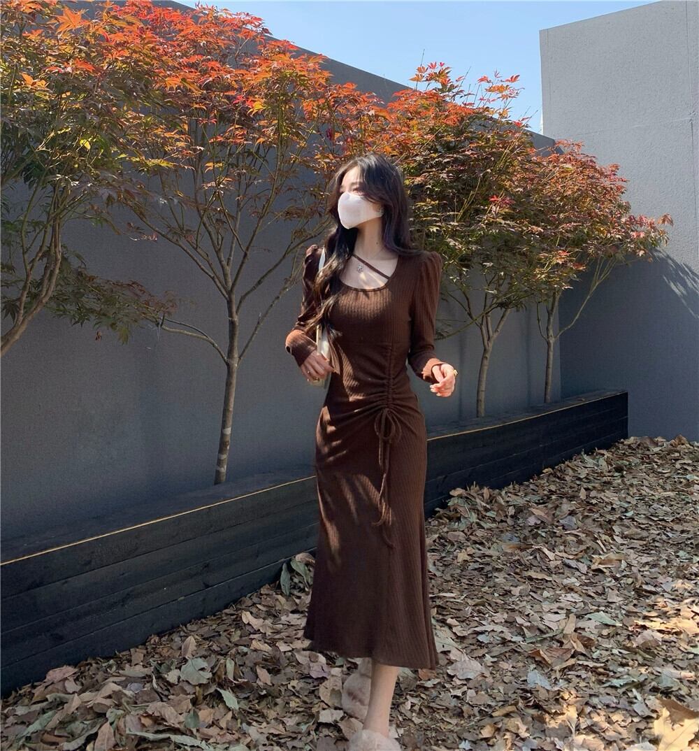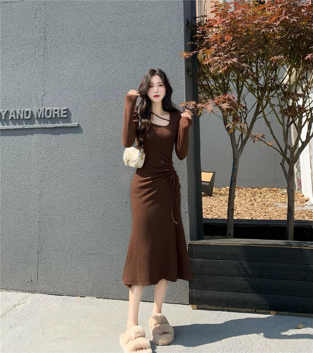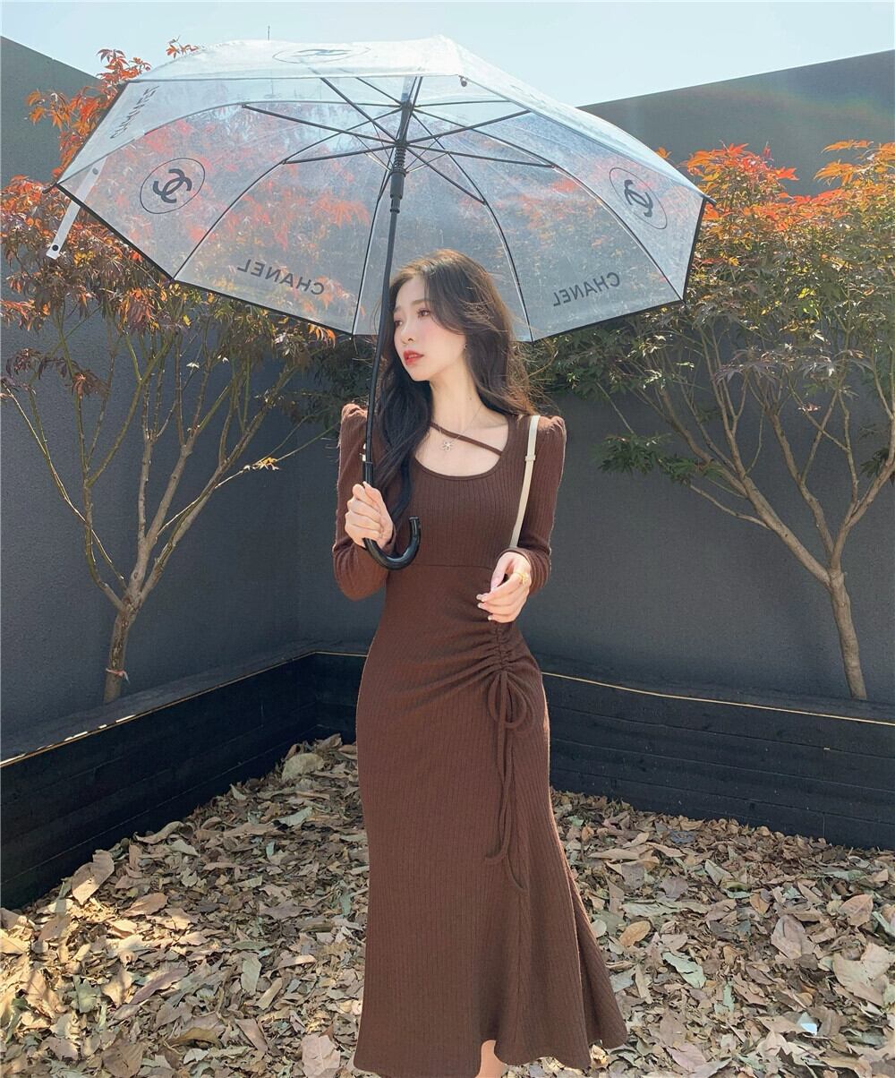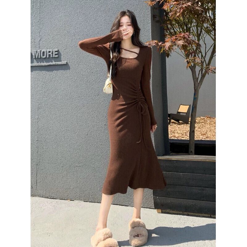 ウエストフィッシュテールロングスカート新 2023 スタイルのセクシーなバッグヒップデザインセンス巾着ティーティーシックなドレス yingd36748991695