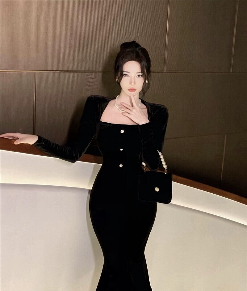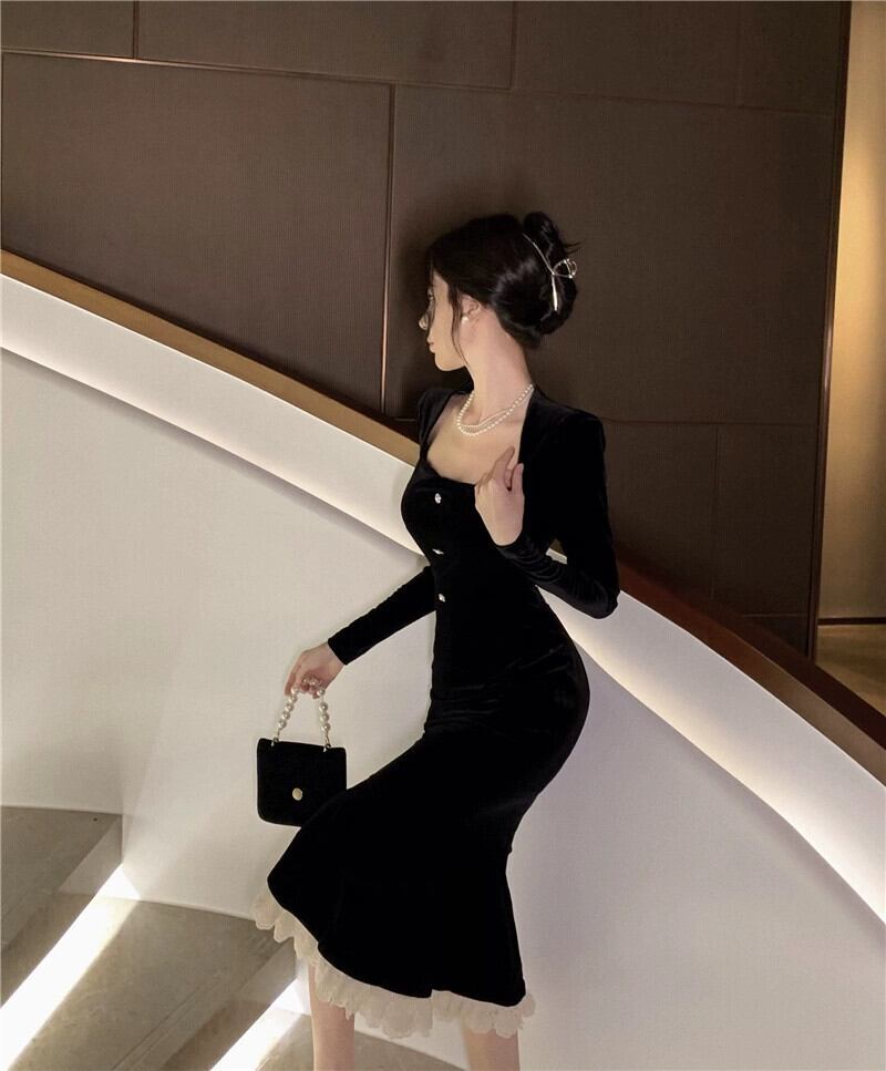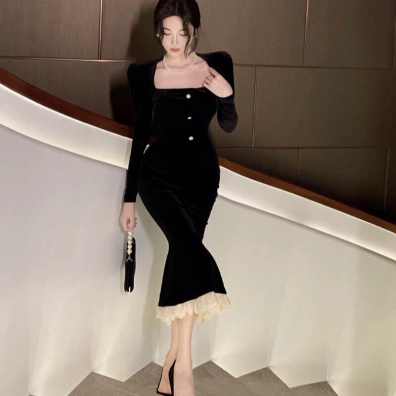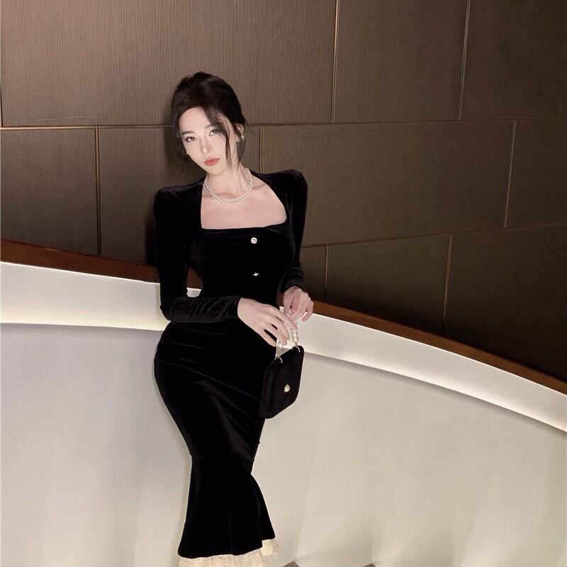 シックなウエストマーメイドドレス新 2023 スタイルのセクシーなバッグヒップハイコールドロイヤルシスタースタイルベルベットドレス秋と冬 オータム 秋物 ウィンター 冬物 yingd3185024228