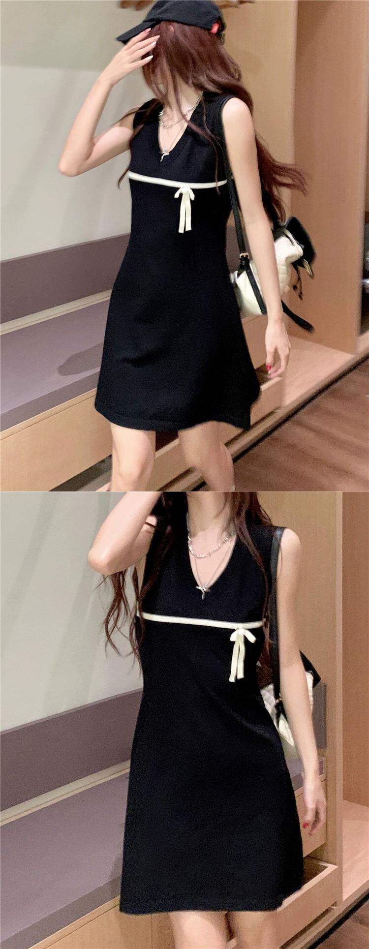 キャミソールドレス レディース 夏服 シック ティー ティー 雰囲気 デザイン センス ニッチ ブラック リボン ベスト ドレス サマー 夏物 yingd37205273638
