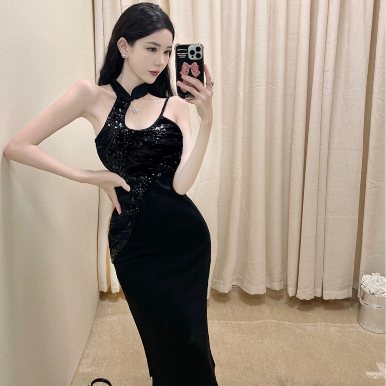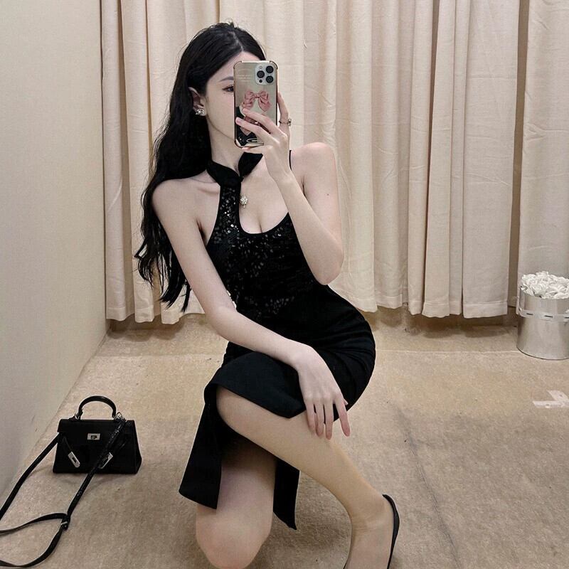 ティーインザティーエアシックユニークな小さなスカートレトロヘボンスタイル気質セレブスパンコールハイエンド絶妙なドレス女性 yingd30315534998