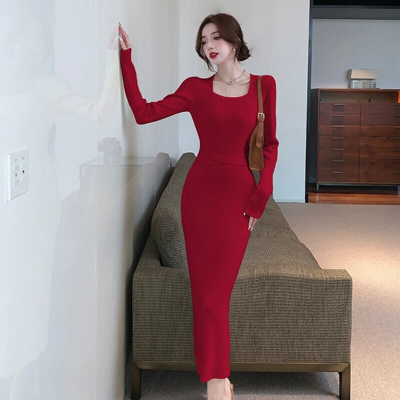 膝上セータースカート秋冬コートスタイルウエスト痩身気質セレブセクシーバッグヒップニットドレス女性 オータム 秋物 ウィンター 冬物 yingd94874842636