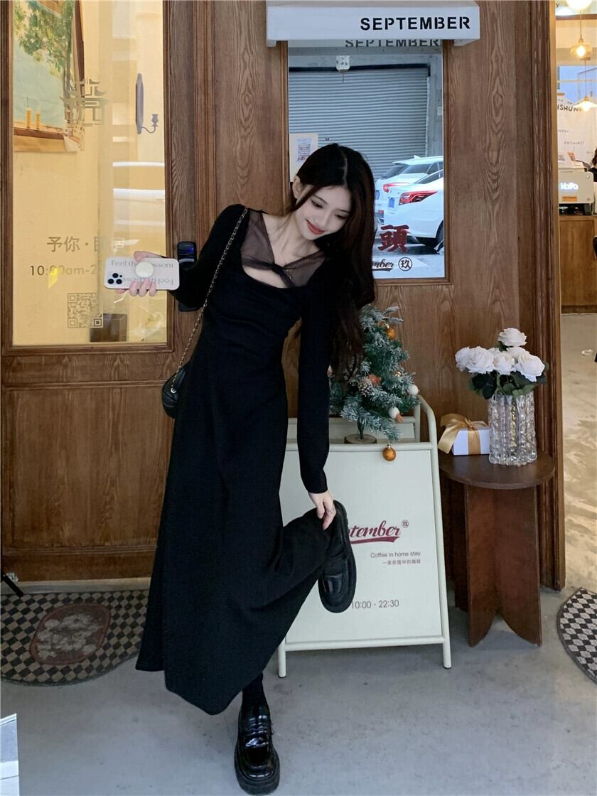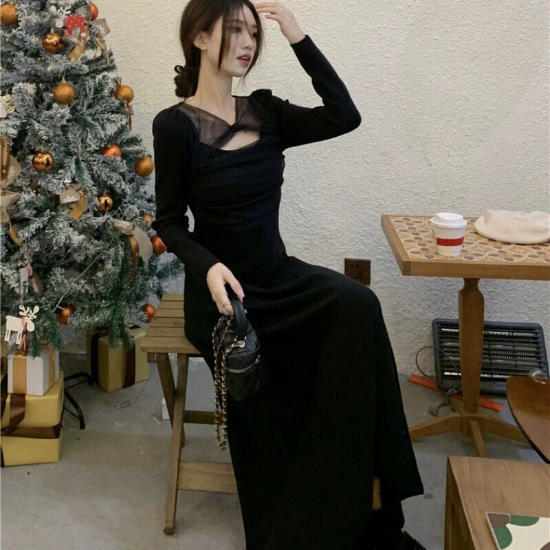 プラスサイズの婦人服 2023 新しいシックでユニークなデザインのメッシュステッチヘップバーンスタイルのハイエンドの絶妙なドレス 大きめサイズ yingd96728178606