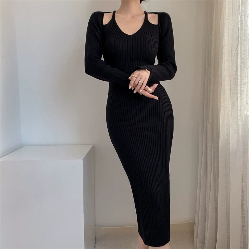 センス中空セクシーなスリットインナーニットドレス気質セレブロングセクション膝上のセータースカート女性の秋と冬 オータム 秋物 ウィンター 冬物 yingd11706400155
