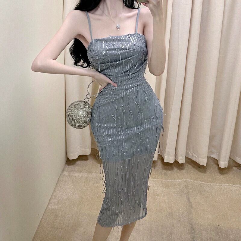 ティーインザティー雰囲気小さなスカートウエストスリム気質セレブハイエンド絶妙なスパンコールストラップドレス女性の夏2023 サマー 夏物 yingd74912289361