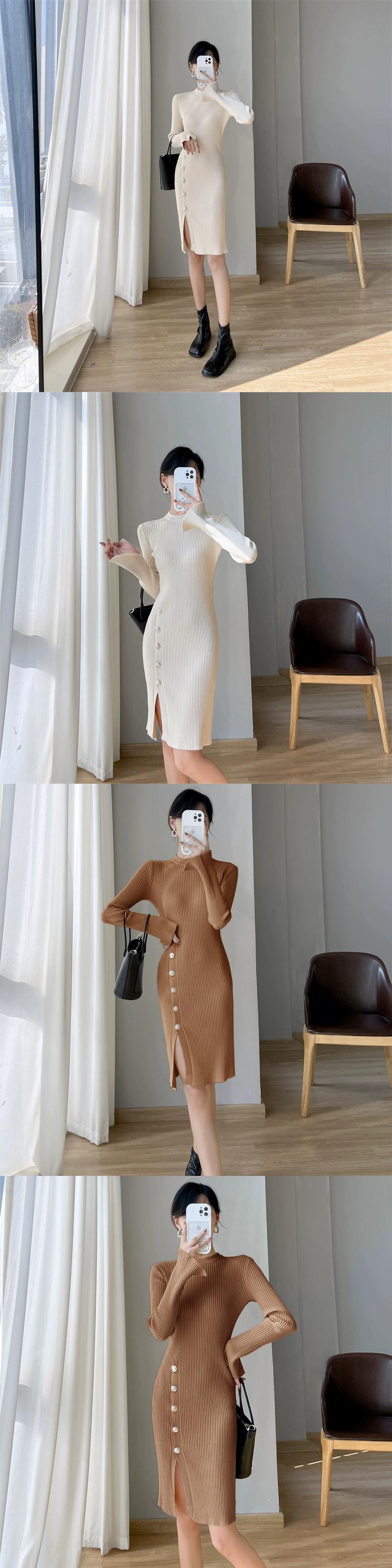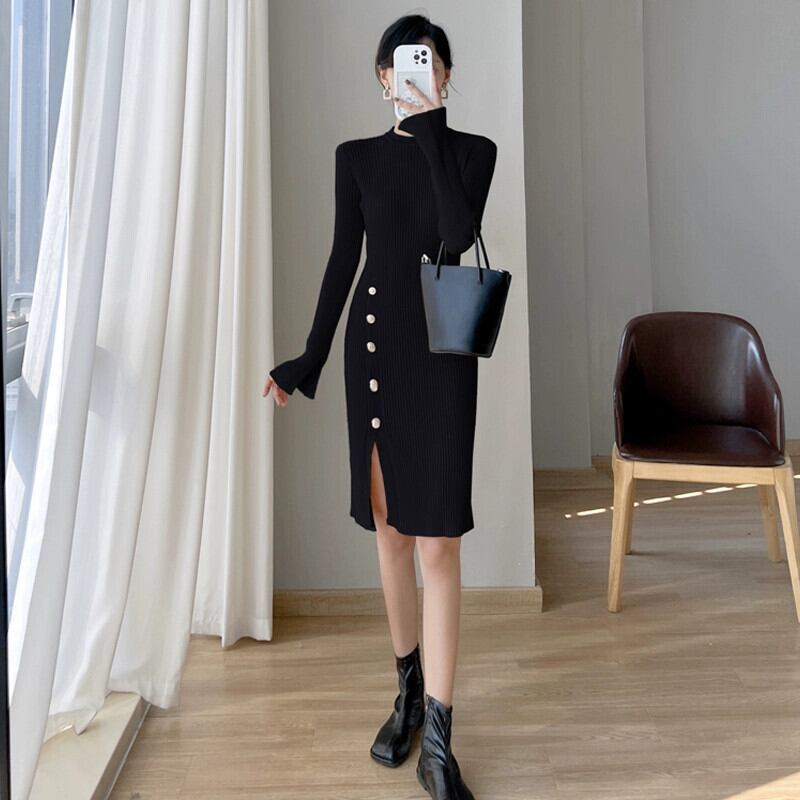 ミッドレングスのセータードレス秋と冬コートバージョンスリムウエストハイエンド長袖ニットドレス女性 ロング オータム 秋物 ウィンター 冬物 yingd76352221360