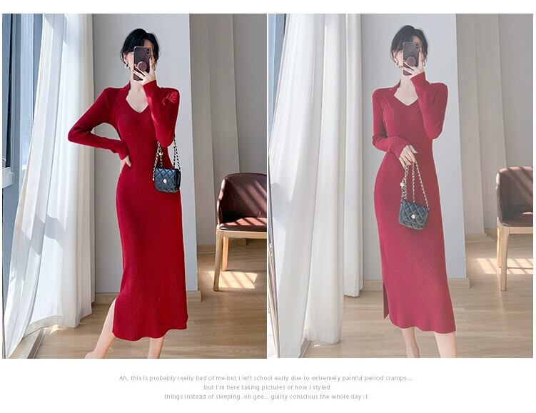 気質セレブコートインナーニットドレスレディース秋冬自己修養と薄いデザイン中空セーターロングスカート オータム 秋物 ウィンター 冬物 yingd74215396476