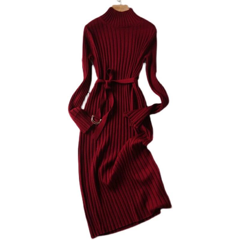 ハーフハイカラーニットドレス女性の秋と冬の自己修養とスリムな気質Yujie軽くて親しみやすいスタイルのロングセクションとコートセータースカート オータム 秋物 ウィンター 冬物 yingd91349177978