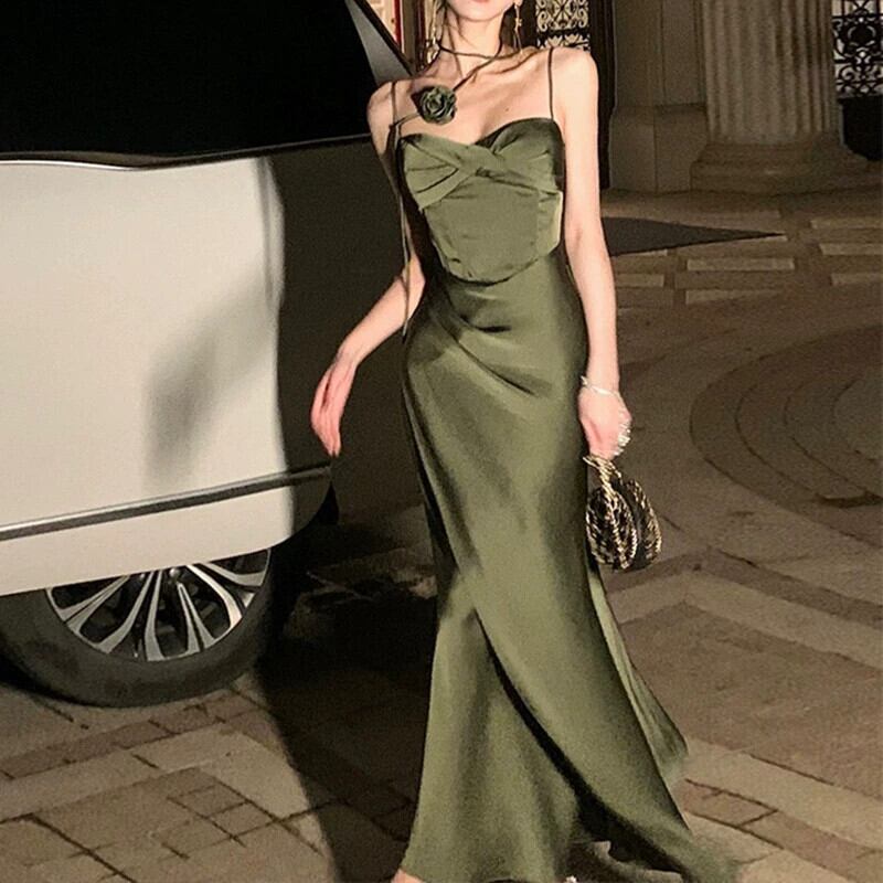 フランスのティーブレイク気質の女性のハイエンドサテンサスペンダードレスシックでユニークなフィッシュボーンドレス2023新しい yingd19934678792