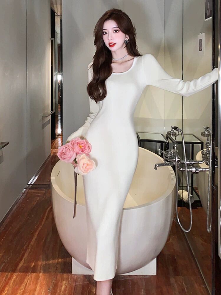 スカートエレガントなレディースロングスカートスリムセクシーなバッグヒップニットドレス女性のセータースカート秋と冬コートバージョン オータム 秋物 ウィンター 冬物 yingd12445162067