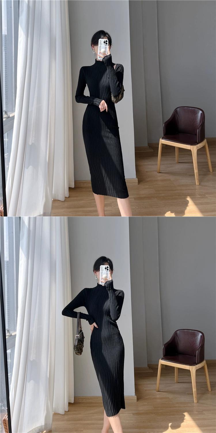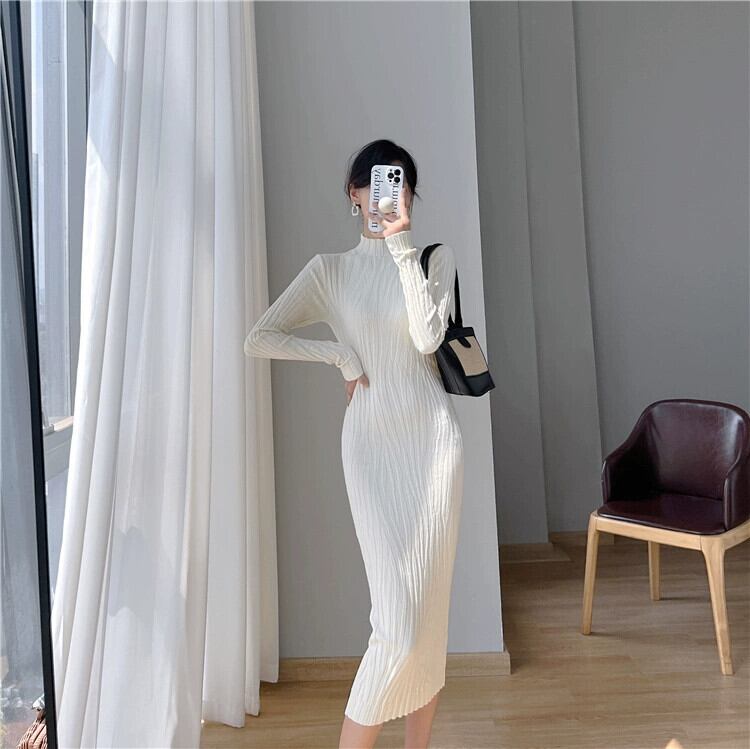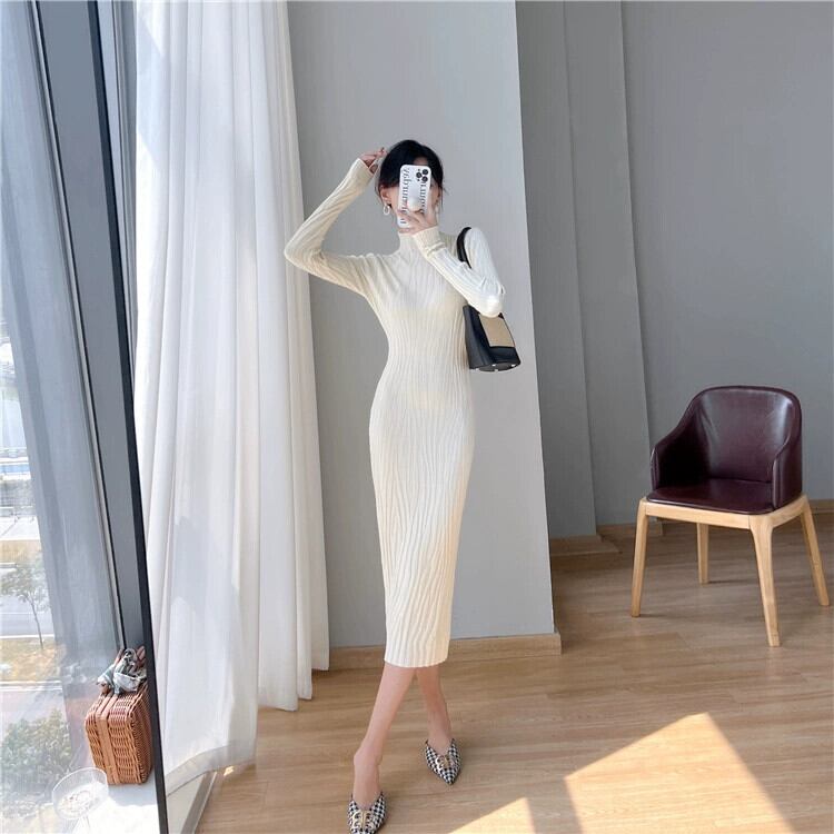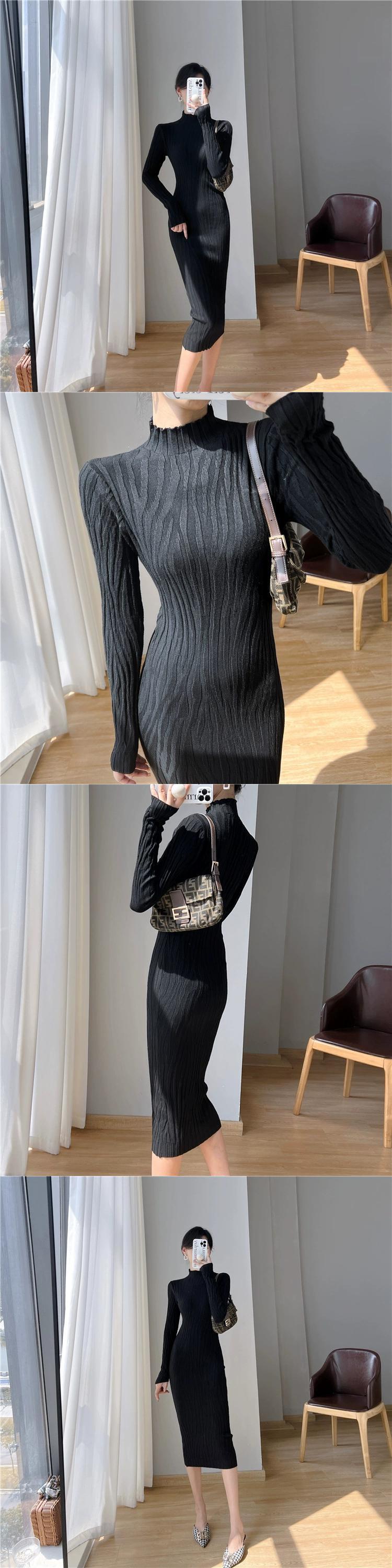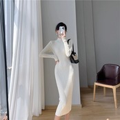 膝丈のロングセータードレス、スリム、ハーフハイカラー、ニットドレス、気質、社交界、秋の新作スカート オータム 秋物 yingd64921894885