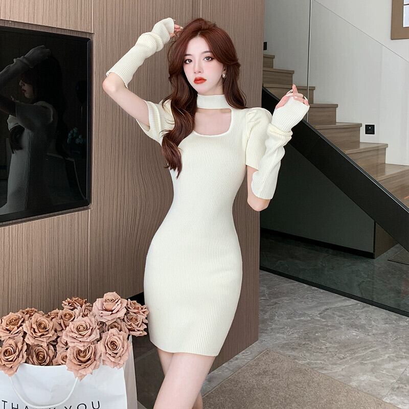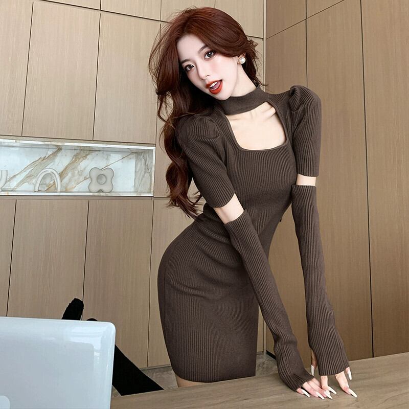 スカート レディース 秋と冬 ウエスト ウエスト 細い気質を示すセレブ セクシー な純粋な欲望スタイル タイト バッグ ヒップ ニット ドレス女性 オータム 秋物 ウィンター 冬物 ピュア yingd23359478771