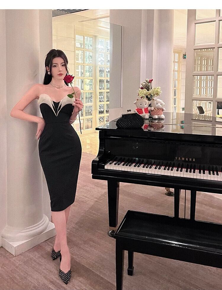 フレンチレトロな気質のセレブリトルブラックドレスソルトスタイル着用軽くて馴染みのあるウエストセクシーなVネックハイエンド絶妙なドレス yingd14224429565