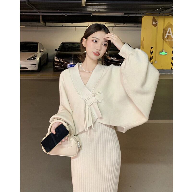 ソルト系ウェア一式揃った秋冬ウェアニットカーディガンスリングドレス気質セレブツーピーススーツ女性 オータム 秋物 ウィンター 冬物 yingd14886695701