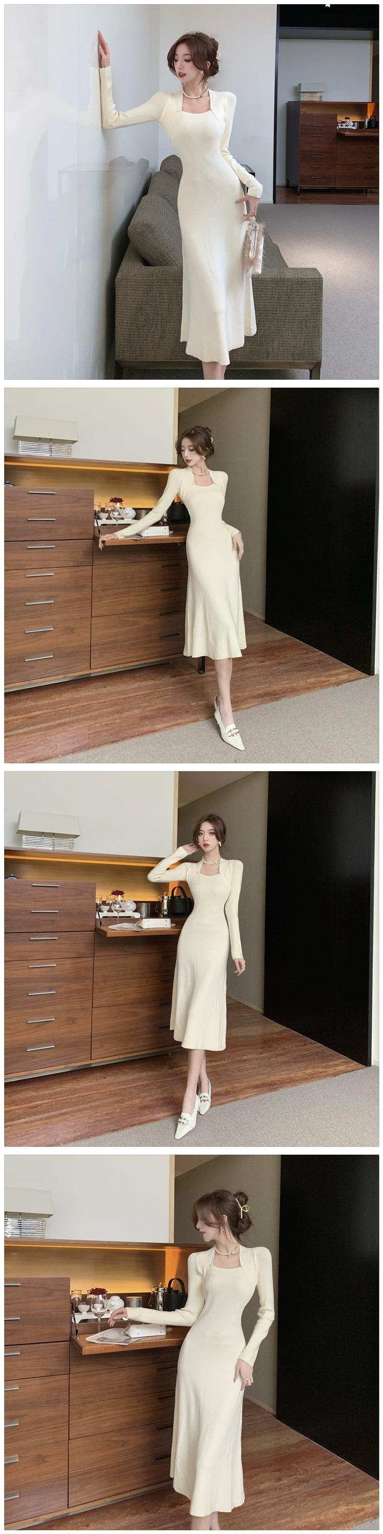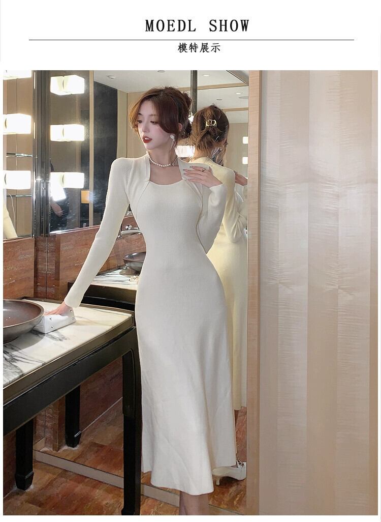 ロング膝丈セータードレス秋と冬コート付きユニークなユニークなスリムフィット長袖ニットドレス女性 オータム 秋物 ウィンター 冬物 yingd74973391274