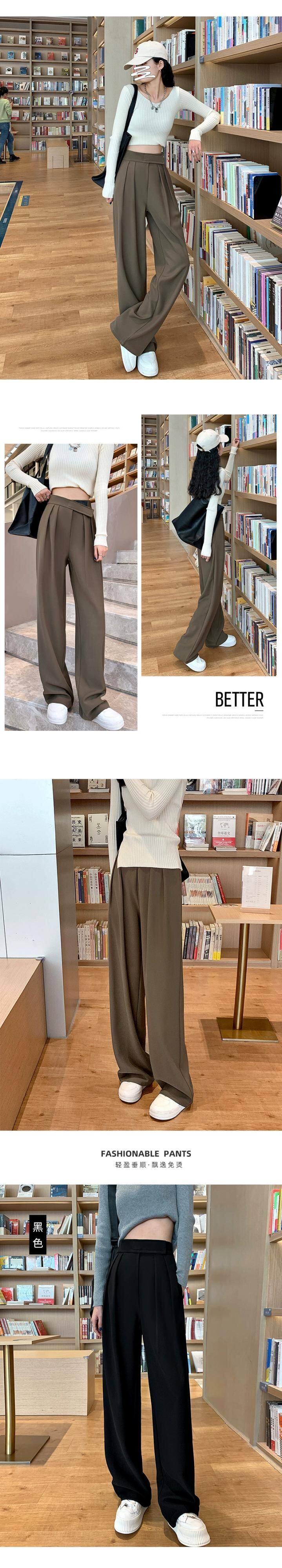 グレーブラウンのワイドレッグパンツ、女性の春と秋のハイウエストストレートレッグパンツ、小さなルーズカジュアルモップスーツパンツ スプリング 春物 オータム 秋物 yingd40907648775
