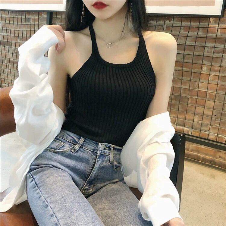 バージョンの吊りネックキャミソールストライプインナーウェア底自己修養純粋な欲望セクシーなノースリーブニットトップ女性 ピュア yingd94038810513