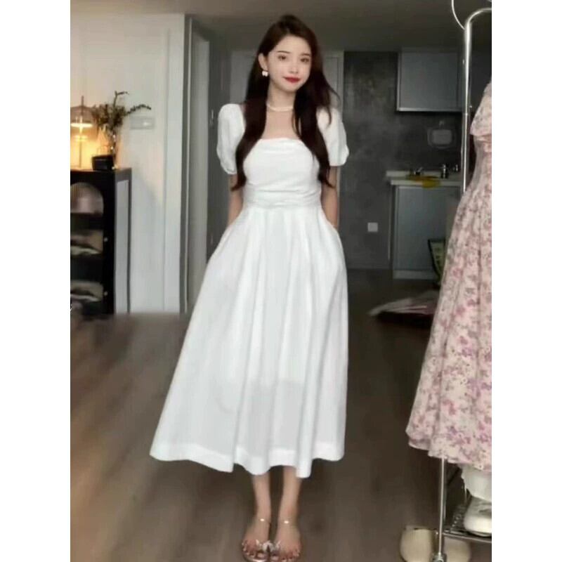スカート女性のデザインセンスニッチウエストウエストスリム気質セレブハイエンド婦人服ライト高級スクエアカラープリーツドレス女性 スクウェア yingd74020565693