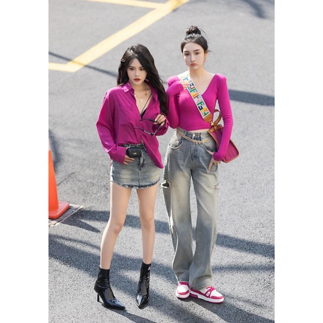ユニークなトップス、超格好良いデザイン、ニッチなVネック、スリムで多用途、長袖Tシャツ、ボトムスシャツ、レディース春秋モデル ロング スプリング 春物 オータム 秋物 yingd89069924945