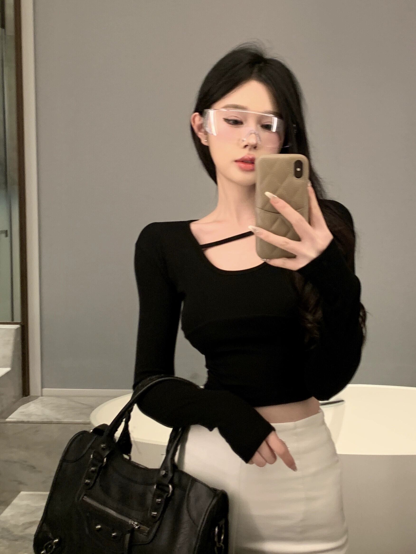 ニッチ感のある香港風シックなトップス女性ならではの超美形スリムスリム長袖Tシャツレディースボトムスシャツ ロング yingd49731289340