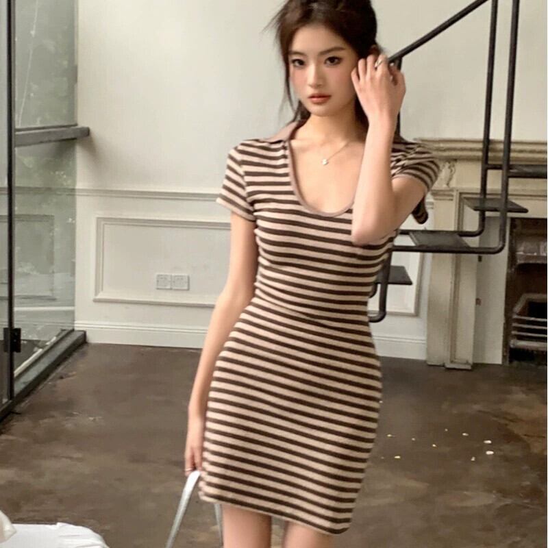 スリムなウエストとスリムな気質のセクシーなバッグヒップスカートの女性のニッチなデザインセンス高冷王室姉妹スタイルのストライプのドレスの女性の夏 サマー 夏物 yingd55492909473