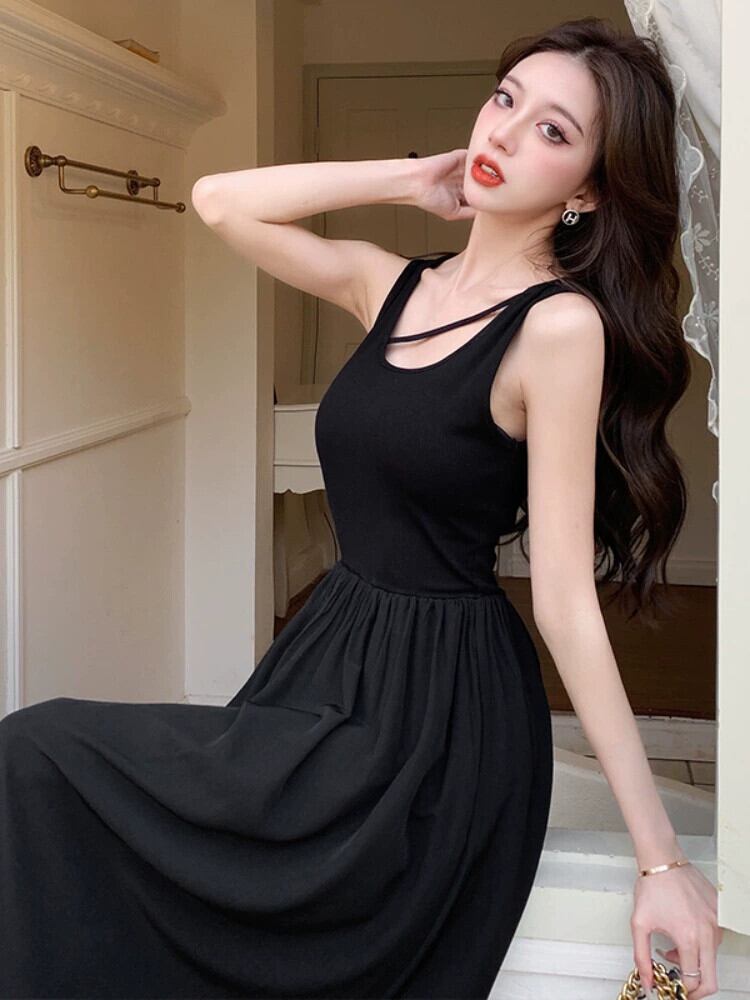 コールドスタイルハイエンドベストロングスカート女性の夏の自己修養デザインセンスニットステッチドレス 2023 女性の新スタイル サマー 夏物 yingd86276092601