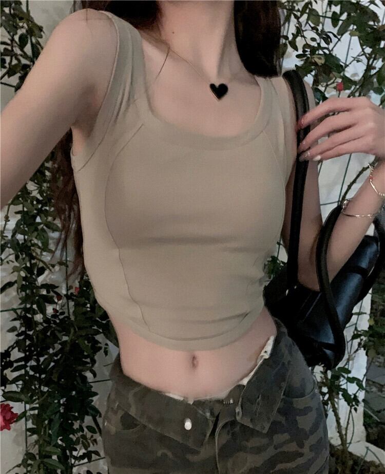 ボトムベスト 2023 新スタイルデザインフィッシュボーンノースリーブトップ女性のショートセクシーなキャミソール yingd8261223273