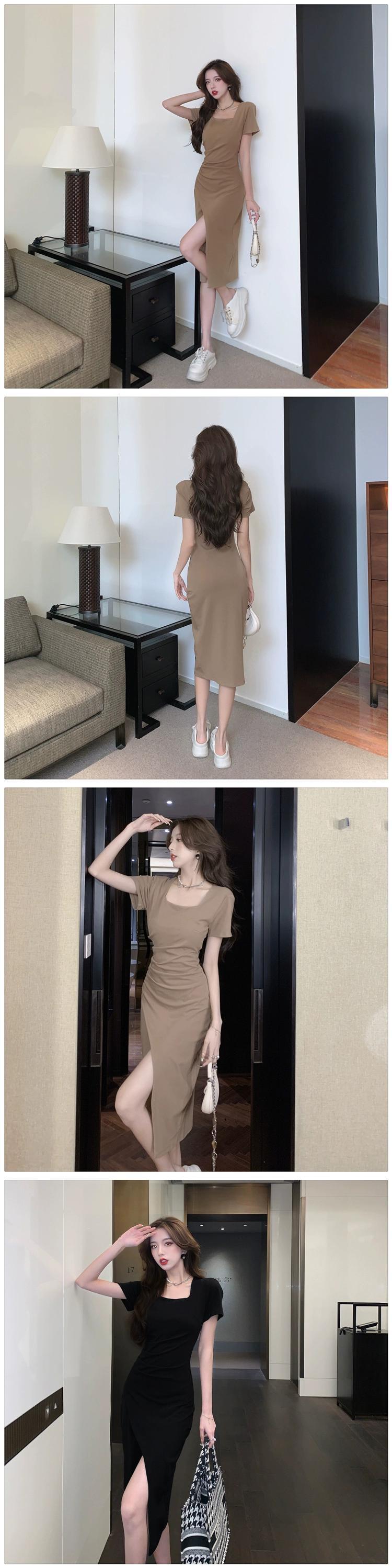 シックでユニークなスカートの女性のニッチなデザインのウエストラインと細い気質のフレンチスクエアカラースリットドレス女性の夏 サマー 夏物 スクウェア yingd92671523299