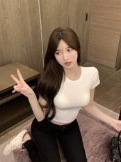 シックで甘い、スパイシーでとても妖精のトップス、短い純粋な欲望、ボトムスシャツ、レディースサマー、スリムで薄い白い半袖Tシャツ ショート ホワイト 大人ガーリー スウィート キュート カジュアル 夏物 ピュア yingd23567224117