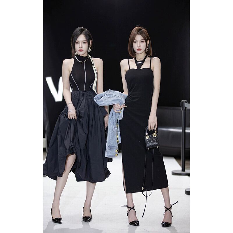 気質セレブのハイエンドスカート女性のニッチデザインセンスヘップバーンスタイル純粋な欲望セクシーな吊りネックサスペンダードレス女性の夏 サマー 夏物 ピュア yingd43130934936