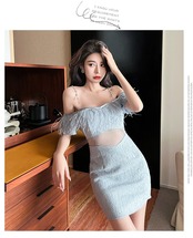 純粋な欲望スタイルのセクシーなワンショルダーサスペンダースカート女性のニッチデザイン中空ハイエンド絶妙なドレス夏 サマー 夏物 yingd43734180224