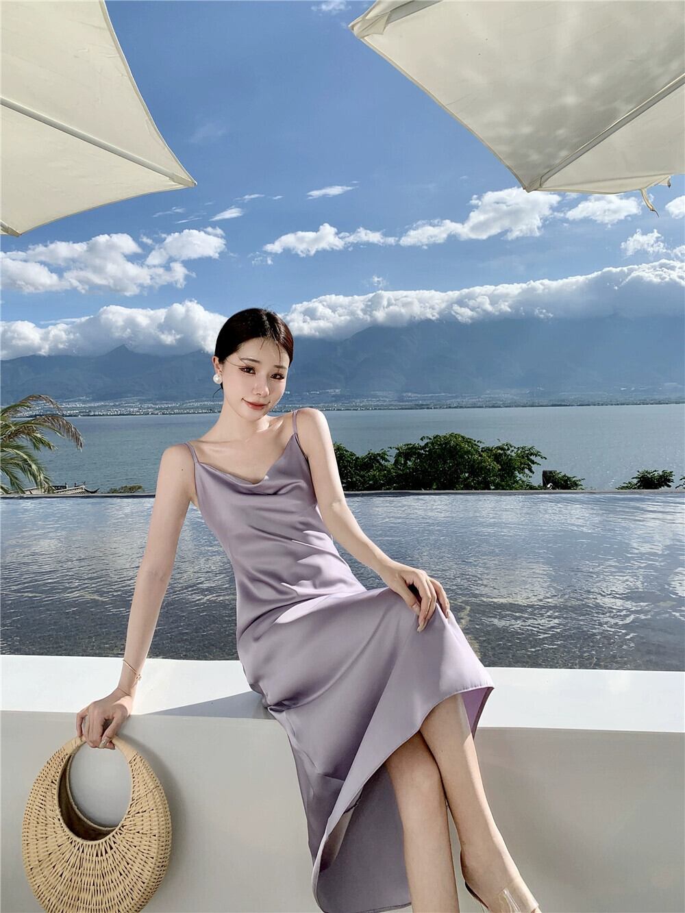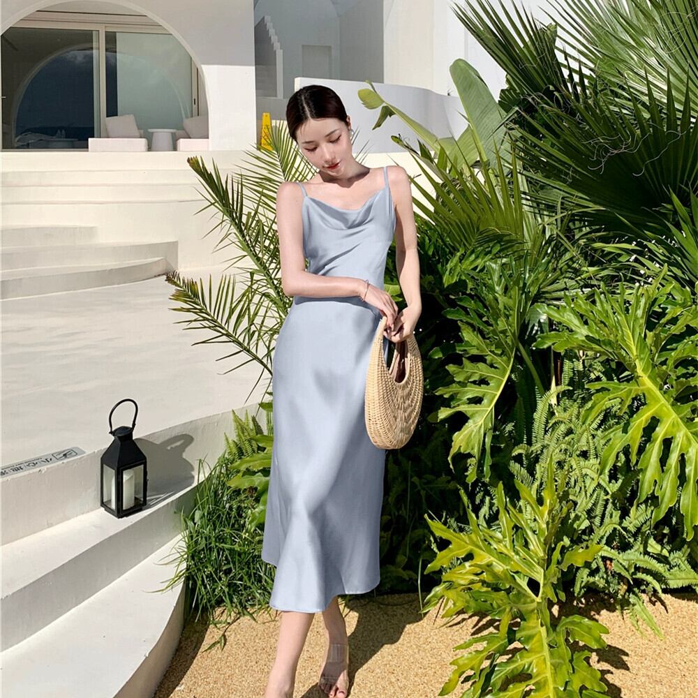 ティーブレイクフレンチスタイルのハイエンドアセテートサテンスイングカラーサスペンダードレス2023女性の新しいウエストウエスト気質ロングスカート yingd32827962699