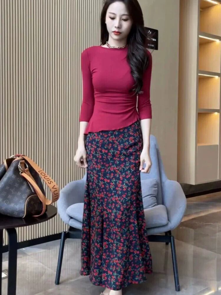 洋梨型フィギュアスカート 2023 新しい女性のハイウエスト痩身プリントバッグヒップマーメイドスカート女性のニッチなデザインセンス ハイウェスト yingd5452875463