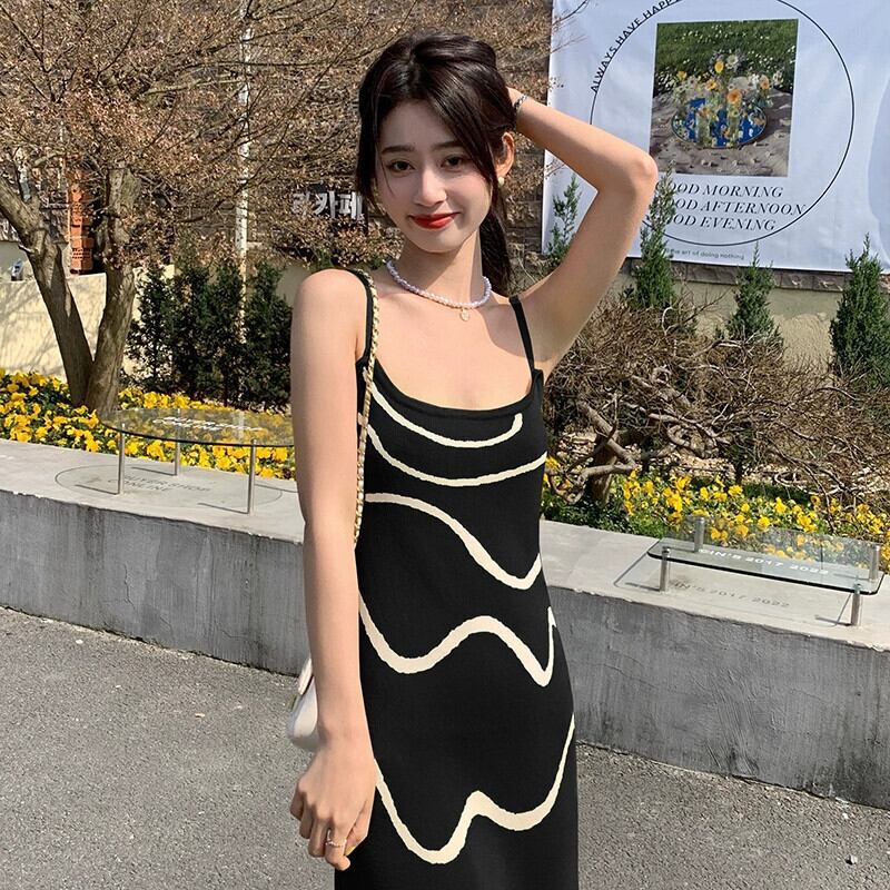 香港スタイルのレトロシックなスカートの女性のニッチデザインセンスウエストウエスト痩身気質ハイエンドニットサスペンダードレス yingd41901878147