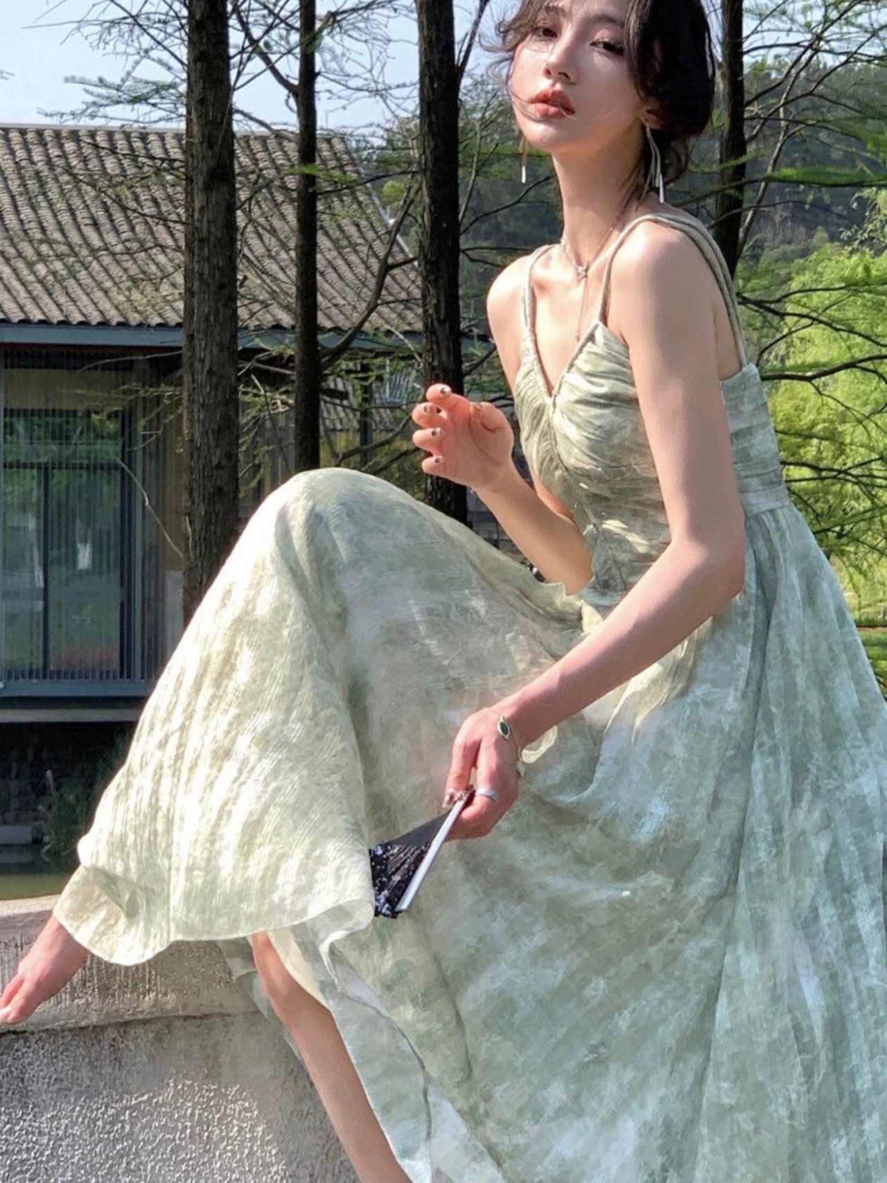 中国風のドレスニッチデザイン気質の女性のハイエンド背中の開いた花柄ドレス女性の夏の 2023 新しいスタイル サマー 夏物 yingd39908777434