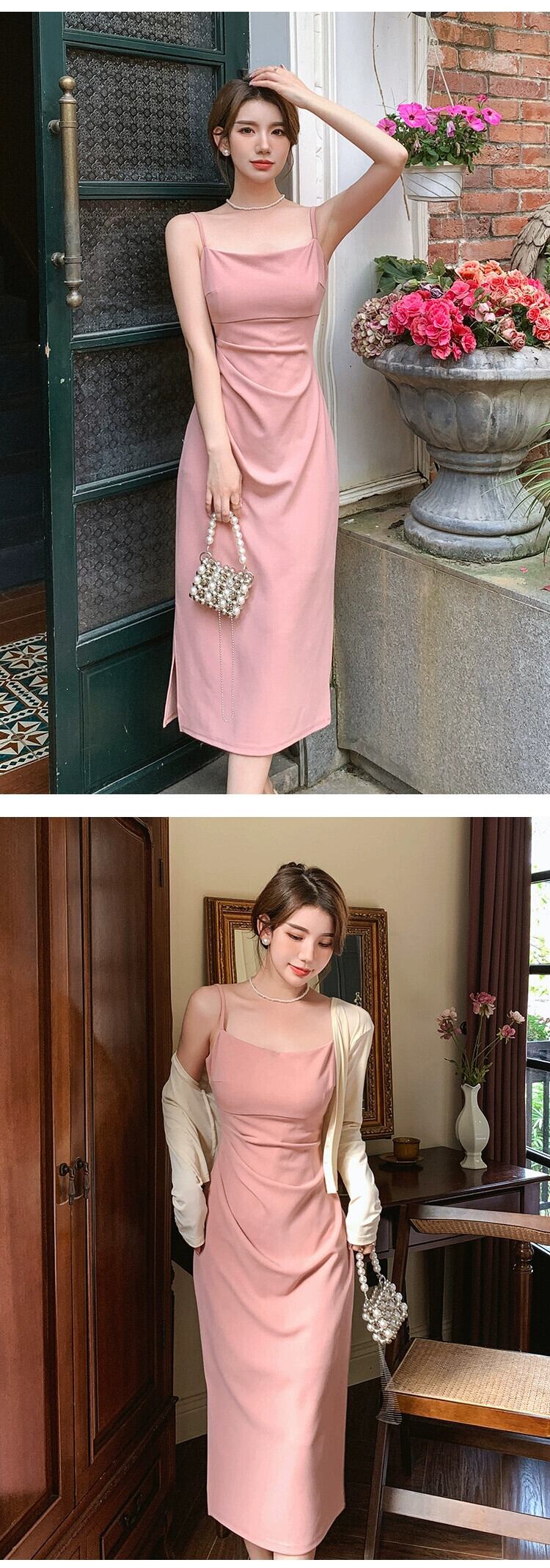 中国風の婦人服 2023 新スタイル Yujie 軽くて馴染みのあるスタイルの高級感のあるウエストプリーツサスペンダードレスニッチデザイン yingd59516114935