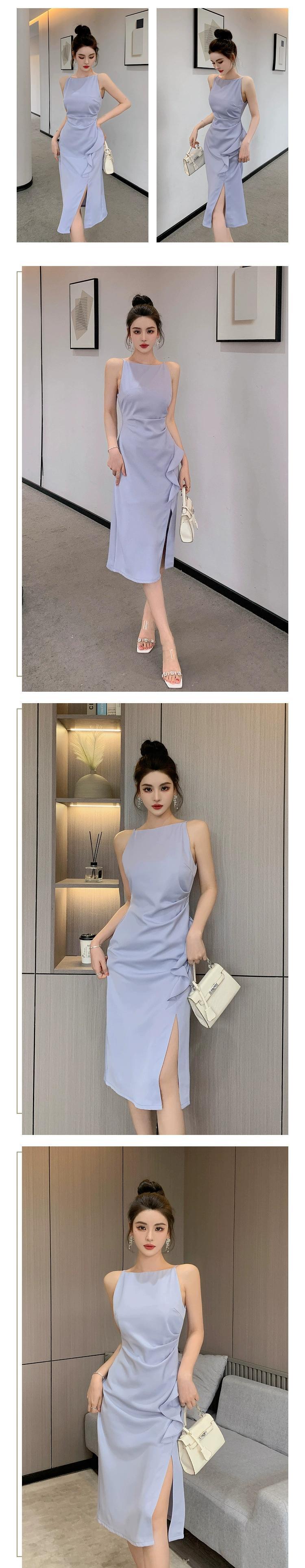 シックでユニークなスカートの質感の高品質ウエストスカート気質の女性のウエストプリーツスリットストラップドレス女性 yingd71209760091