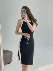 ティーブレイクフレンチハンギングネックサスペンダースカート女性のニッチデザイン自己修養の感覚痩身セクシーなオフショルダーニットドレス女性 yingd42272915252