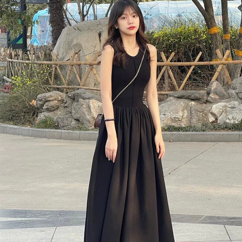 フレンチレトロヘボンスタイルロングスカートテクスチャ高品質ウエストノースリーブベストドレス2023女性の新作夏 サマー 夏物 yingd41834601660