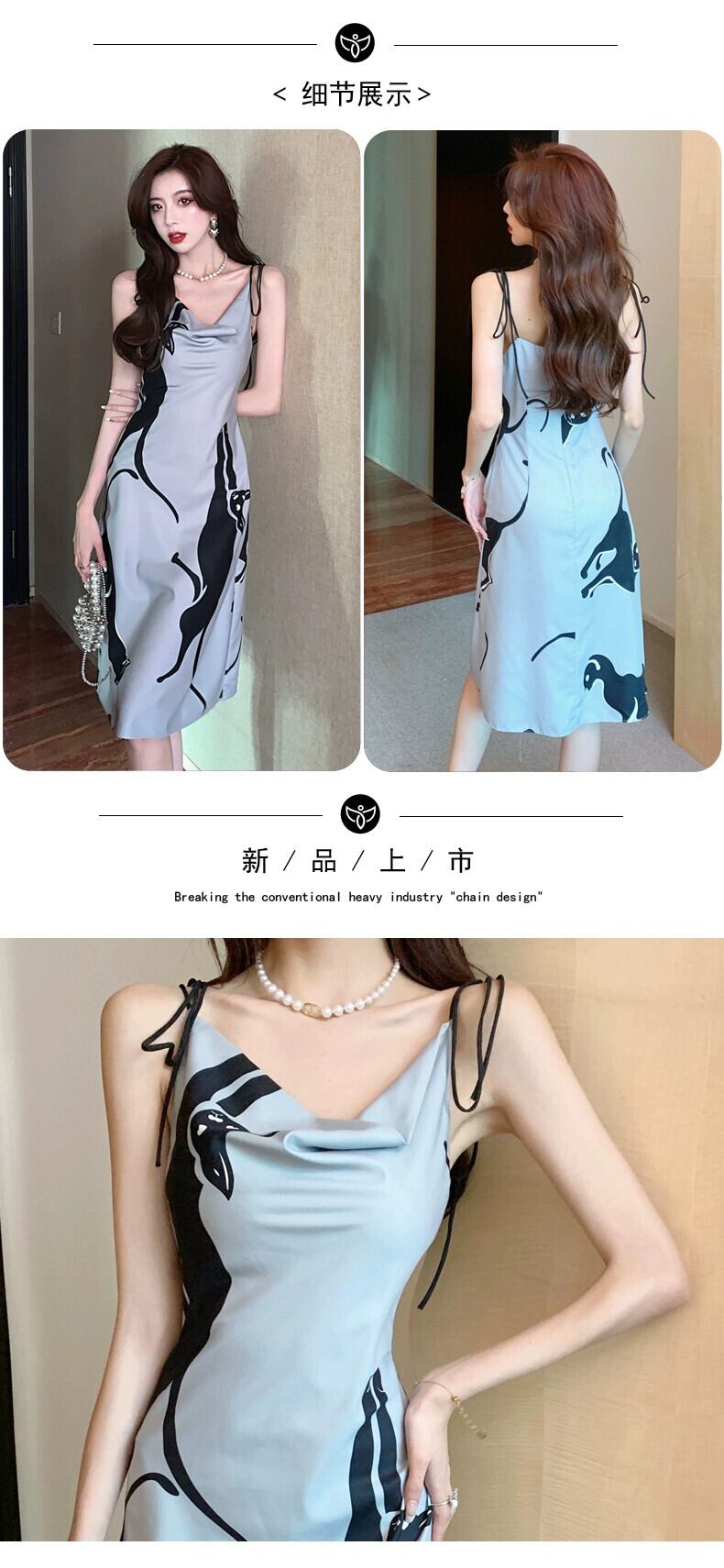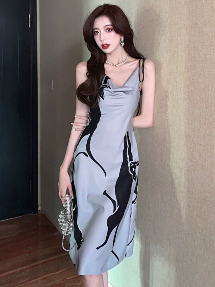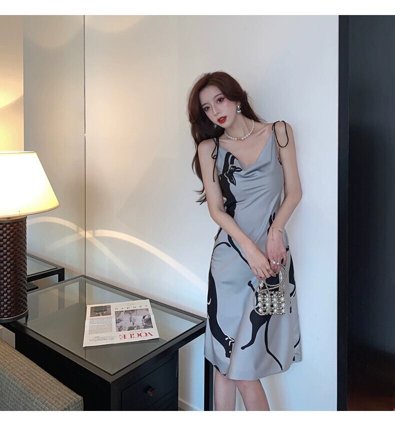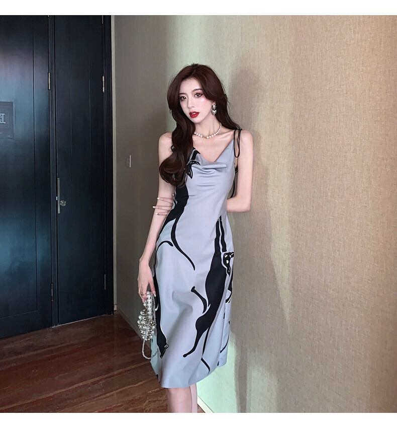 ウエスト甘辛スカート女性のニッチデザインティーブレイクフレンチプリントサスペンダードレス 2023 女性の新スタイル 大人ガーリー スウィート キュート カジュアル yingd95484576977